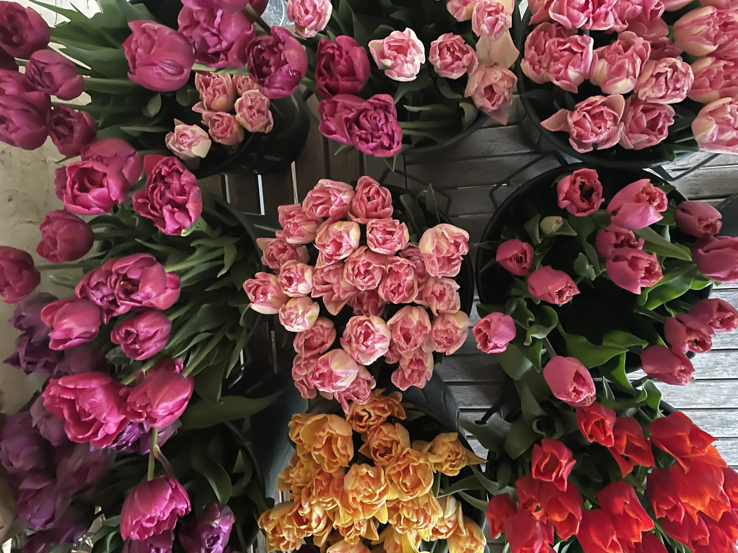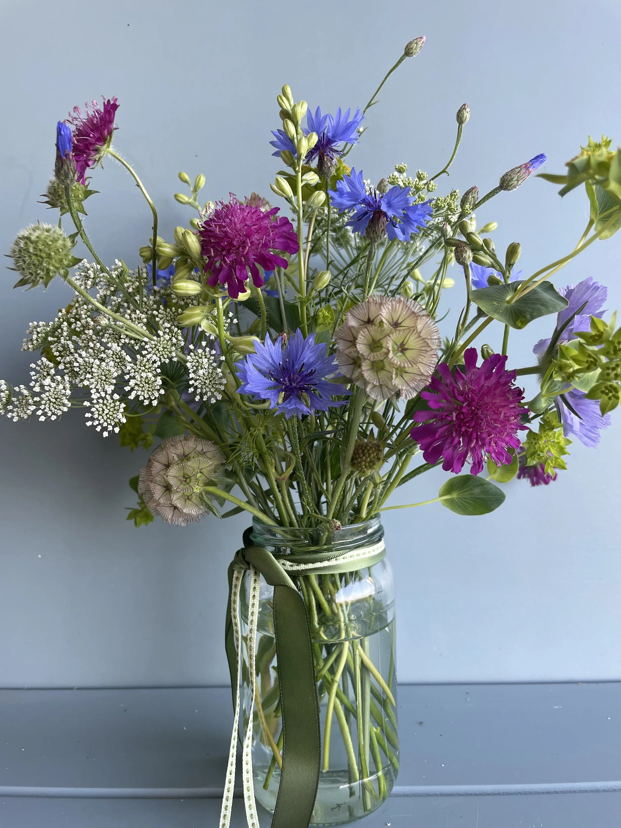 Buckets of flowers and foliage. Short stemmed for bud vases and jam jars and standard for vase arrangements.