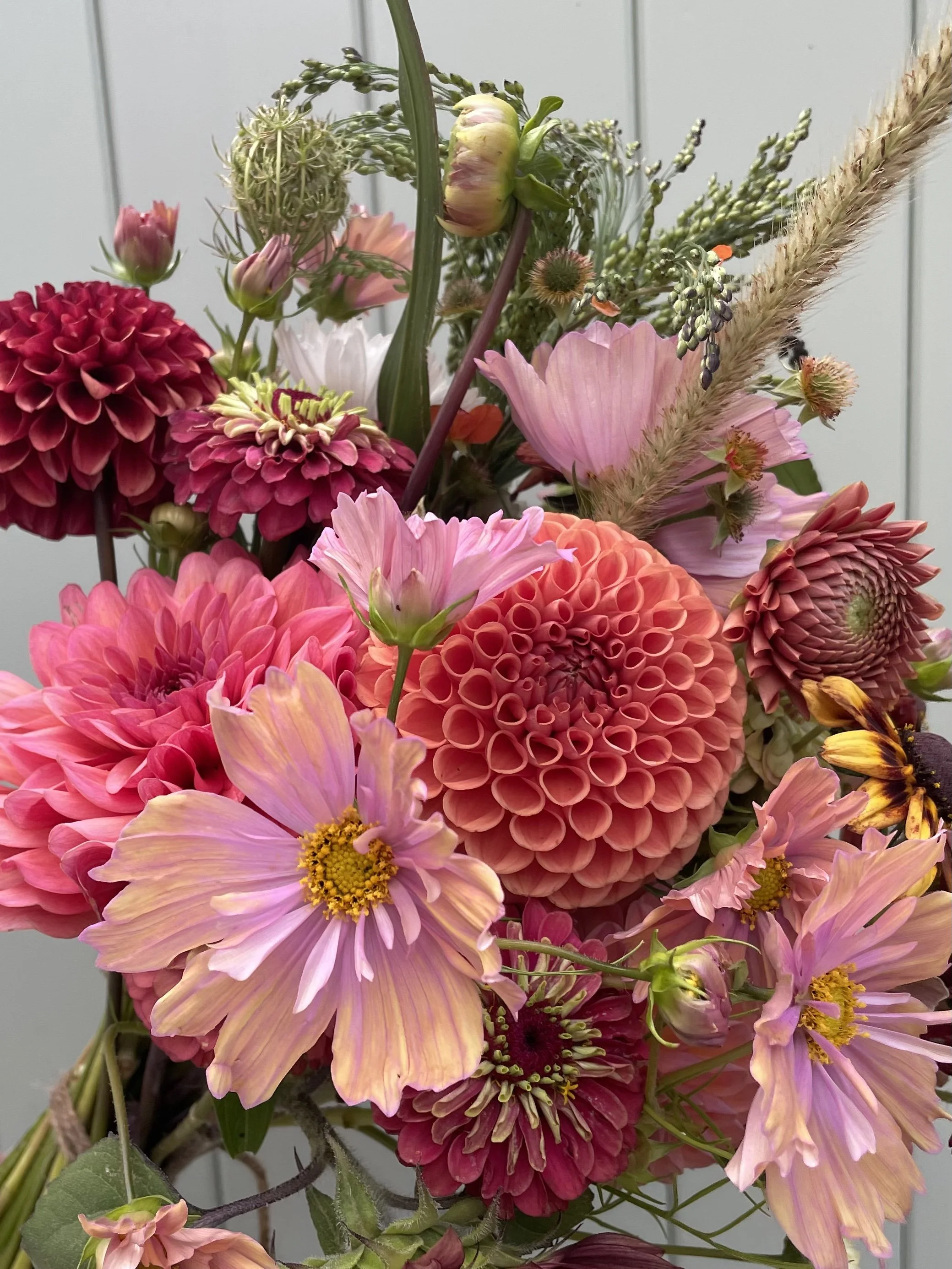 Thank you for visiting the Shotley Flower Field flower shop. If you would like to order flowers please do drop Sophie an email, a WhatsApp or call her on 07809 776601. As orders are freshly picked we do require a minimum of 24 hours notice. Please note that the pictures below are just examples of what we can provide. Our flowers change with the seasons and no two weeks are the same. If you would like a particular colour scheme please do ask otherwise we will pick whatever is looking good at the time.